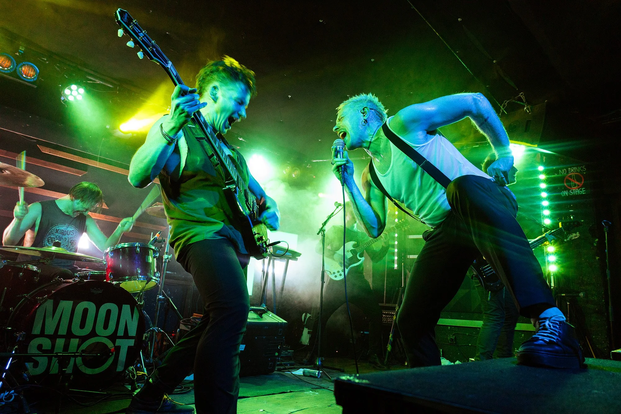 In the case of Moon Shot, whose debut Confession hit us in the collective gut in October 2021, that dream was following a first career in bands with which they grew into musicians. Who knew what would happen before putting out tracks to burn your socks off and heading out to engage with people at gigs. It was just four guys getting together to make music hot on the heels of decades making music and touring like hectic evil-eyed-bunnies.